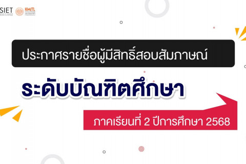 14 May ประกาศรายชื่อผู้มีสิทธิ์สอบสัมภาษณ์ ประจำภาคเรียนที่ 1 ปีการศึกษา 2568 คณะครุศาสตร์อุตสาหกรรมและเทคโนโลยี