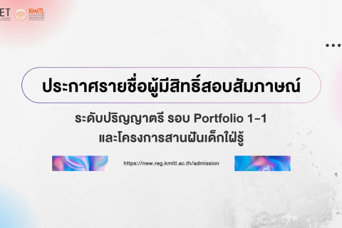 ประกาศรายชื่อผู้มีสิทธิ์สอบสัมภาษณ์ระดับปริญญาตรี รอบ Portfolio 1-1 และโครงการสานฝันเด็กใฝ่รู้ ประจำปีการศึกษา 2569