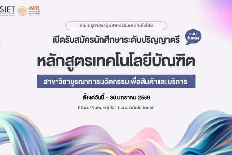📢 เปิดรับสมัครแล้ว! คณะครุศาสตร์อุตสาหกรรมและเทคโนโลยี สจล. เปิดรับสมัครนักศึกษาระดับปริญญาตรี แบบรับตรง รอบที่ 2 ✨ หลักสูตรเทคโนโลยีบัณฑิต สาขาวิชาบูรณาการนวัตกรรมเพื่อสินค้าและบริการ (ต่อเนื่อง) 🗓 เปิดรับสมัครตั้งแต่วันนี้ – 30 มกราคม 2569 📲