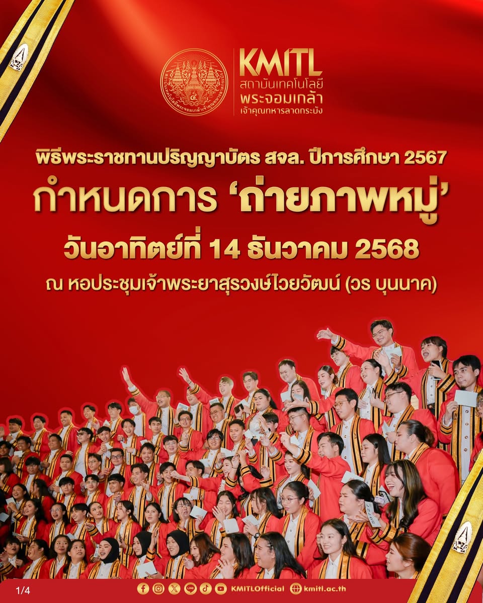 กำหนดการถ่ายภาพหมู่บัณฑิต #สจล ประจำปีการศึกษา 2567 🧡