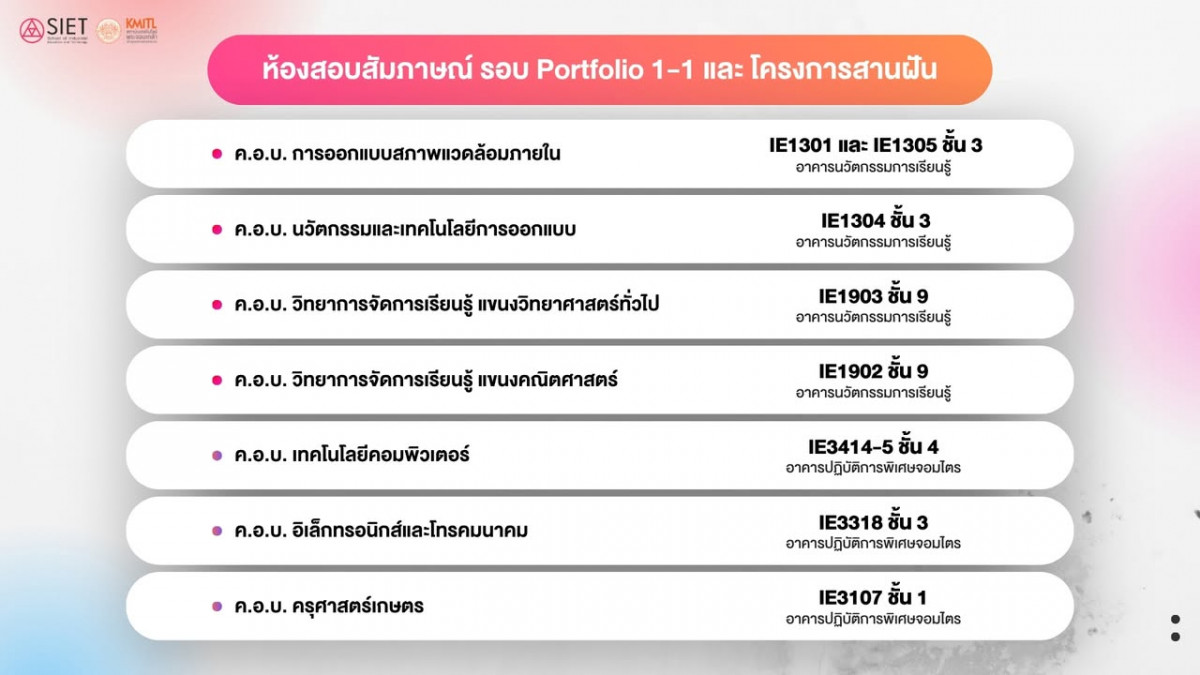 #sietkmitl #āļāļĢāļļāļĻāļēāļŠāļāļĢāđāļĨāļēāļāļāļĢāļ°āļāļąāļ #KMITL #āļŠāļāļĨ #TCAS69 #Portfolio #iFolio #Dek69 #āļŠāļēāļāļāļąāļāđāļāđāļāđāļāđāļĢāļđāđ