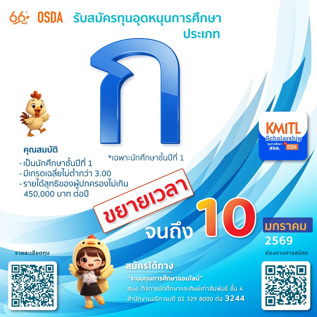 อ่านรายละเอียดทุนการศึกษาในประกาศ : https://osda.kmitl.ac.th/.../Educational-support...