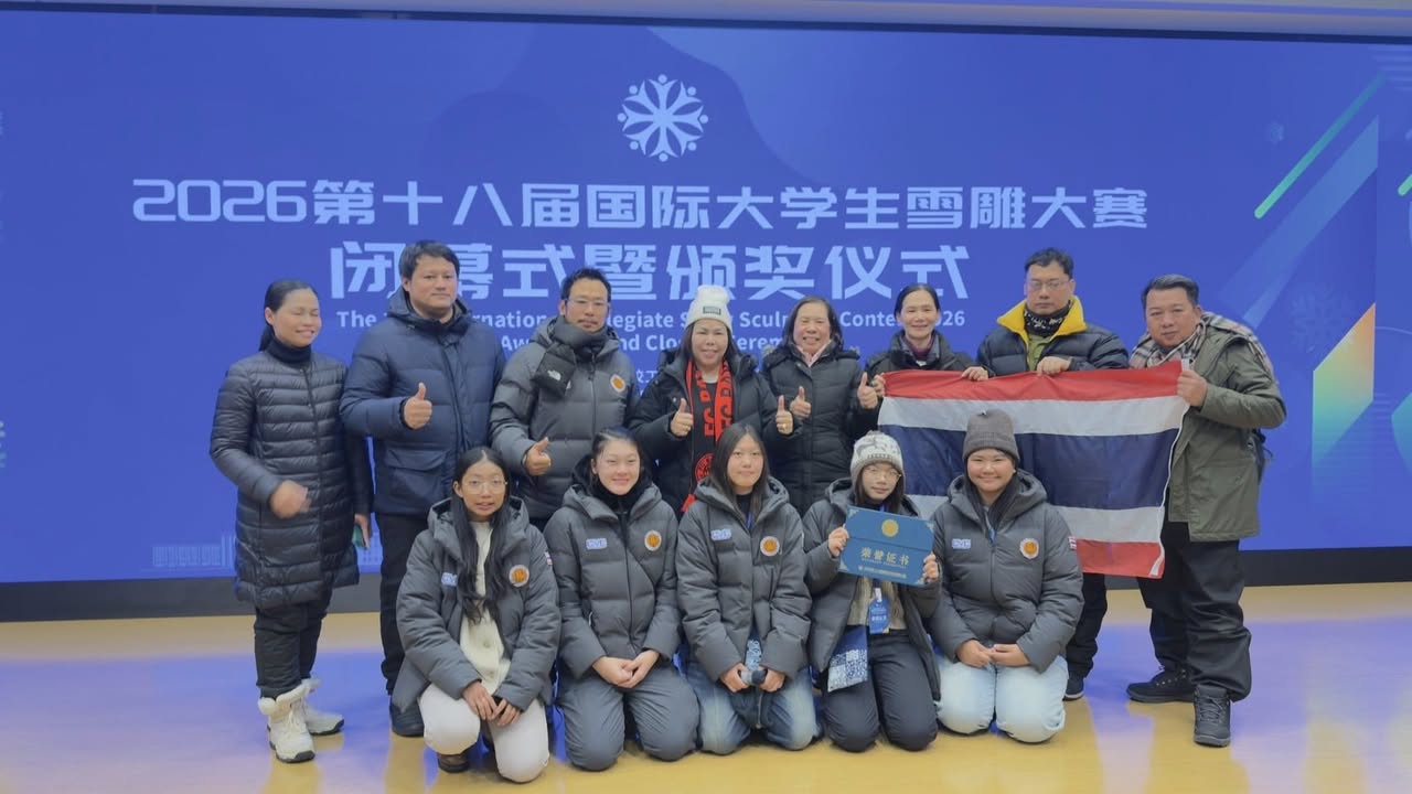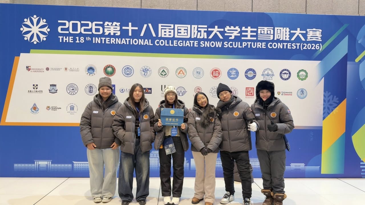 ขอแสดงความยินดีกับศิษย์เก่าคนเก่ง นางสาวศุภรัตน์ หาญศึก (ครูตรี) ศิษย์เก่าหลักสูตรครุศาสตร์การออกแบบ (หลักสูตร 5 ปี) ครูแผนกวิชาการออกแบบ วิทยาลัยอาชีวศึกษาเชียงราย ที่ได้เป็นหนึ่งในทีมครูผู้ควบคุมทีม คว้ารางวัลชนะเลิศการแข่งขันแกะสลักหิมะระดับนานาชาติ 18th International Collegiate Snow Sculpture Contest (ICSSC 2026) ด้วยผลงาน ผลงาน 雪域绽放的斗艳之鱼 ปลากัดที่เบ่งบานในแดนหิมะ ทีม Fighting Frost TH