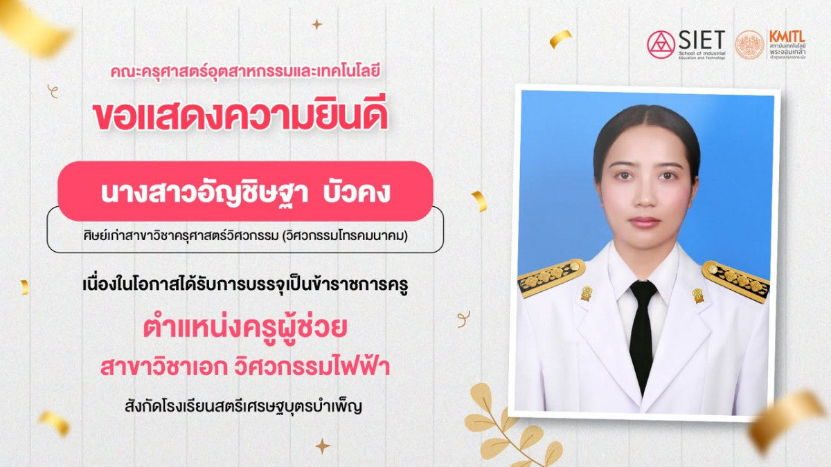 เนื่องในโอกาสได้รับการบรรจุเป็นข้าราชการครู ตำแหน่งครูผู้ช่วย สาขาวิชาเอก วิศวกรรมไฟฟ้า