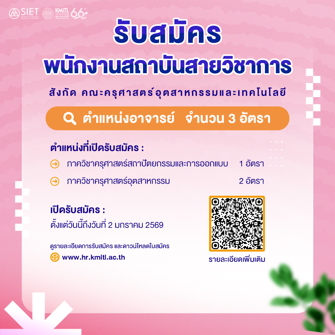 #sietkmitl #KMITL #สจล #ครุศาสตร์ลาดกระบัง #รับสมัครงาน #รับสมัครอาจารย์