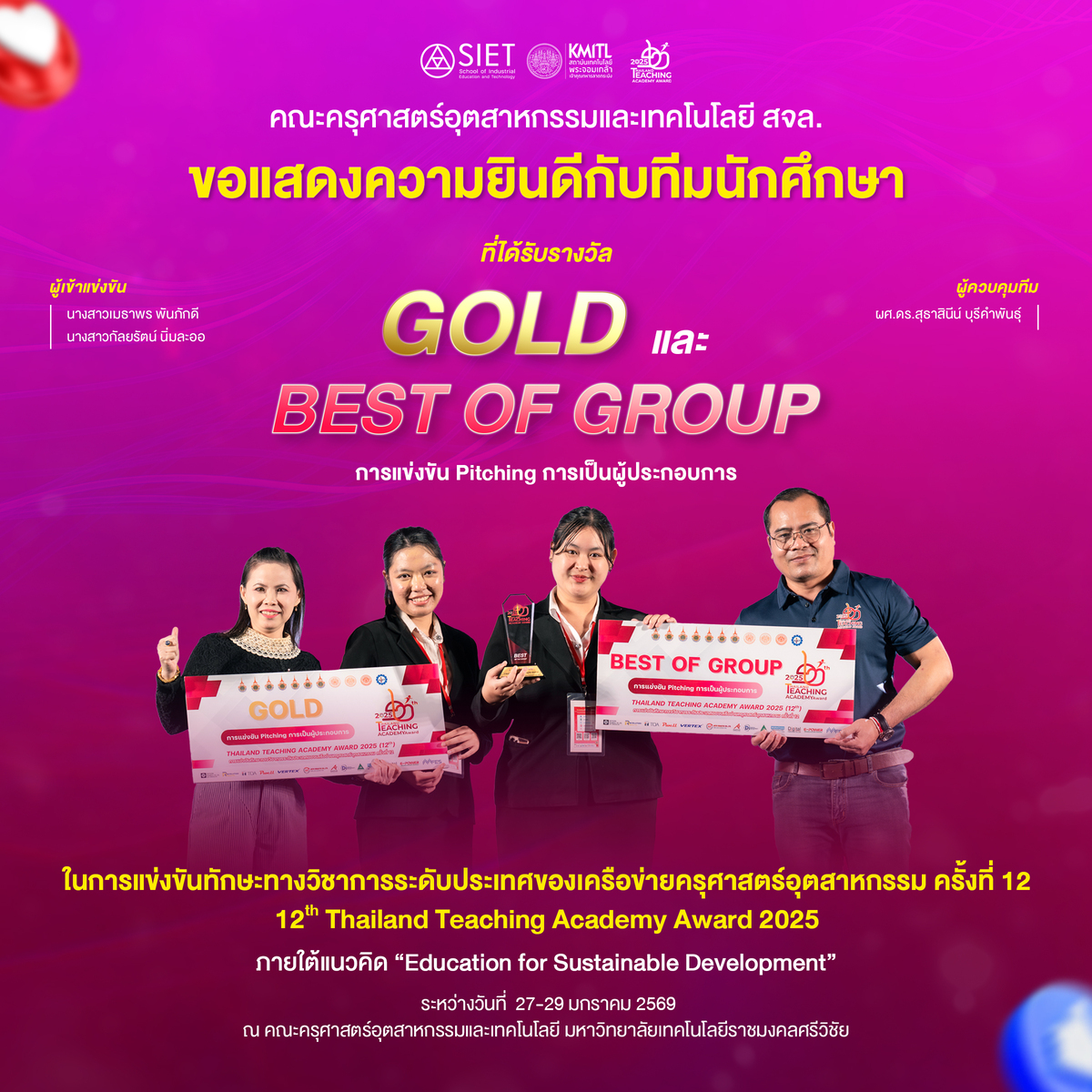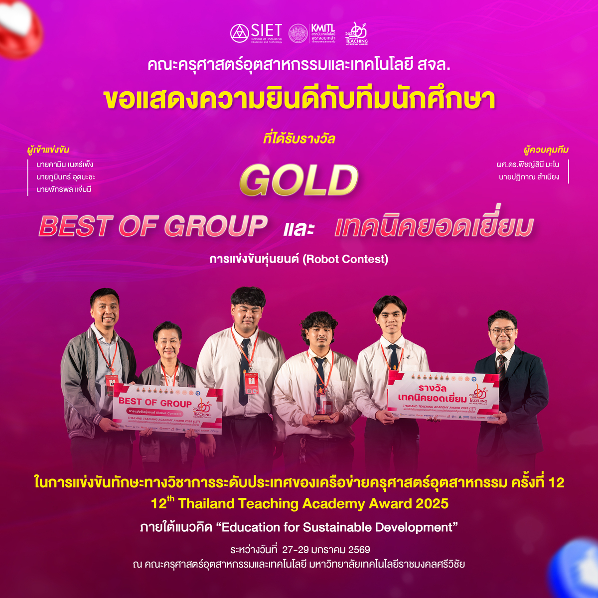 จากการแข่งขันทักษะทางวิชาการระดับประเทศของเครือข่ายครุศาสตร์อุตสาหกรรม ครั้งที่ 12 (12th Thailand Teaching Academy Award 2025) ภายใต้แนวคิด "Education for Sustainable Development"