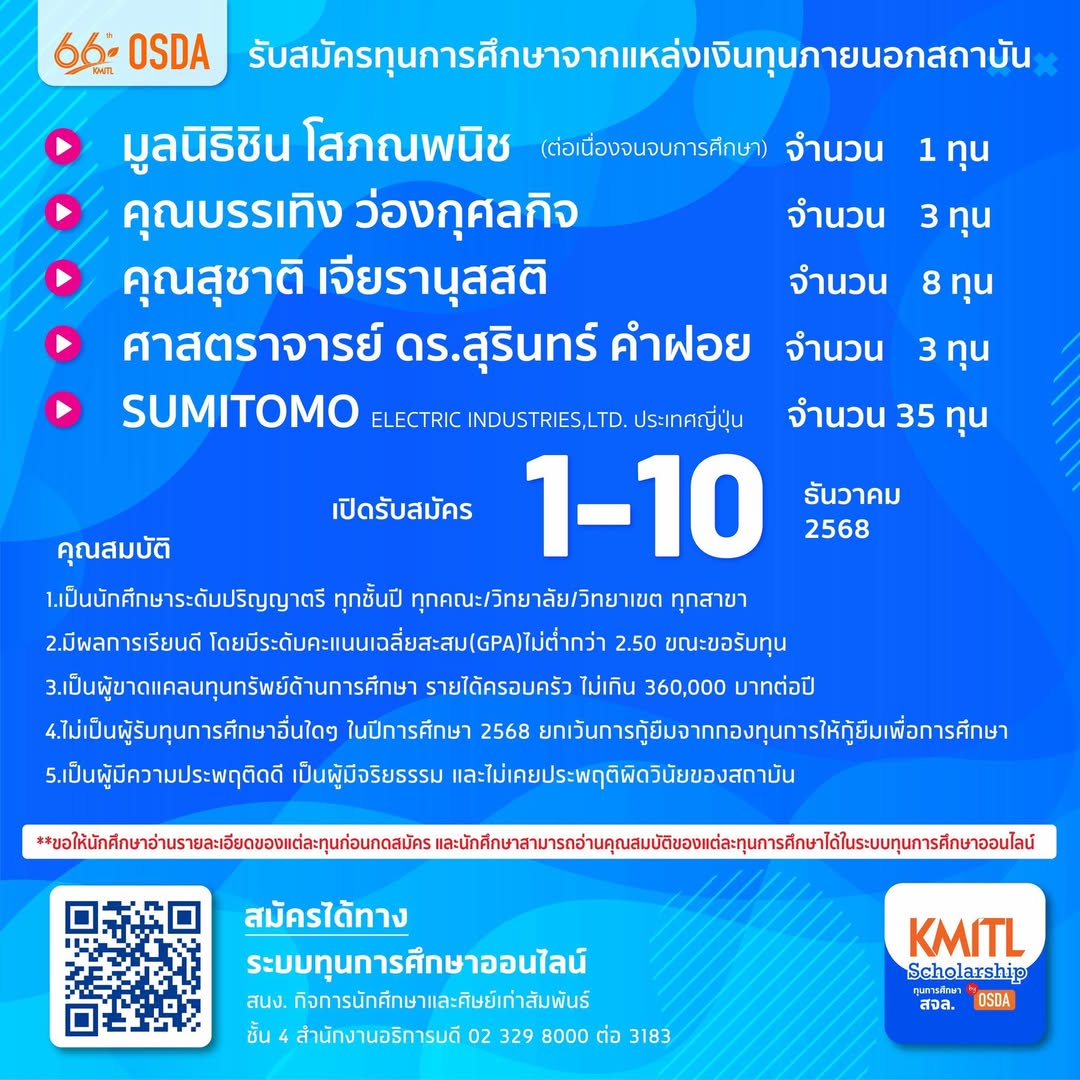 เปิดรับสมัครตั้งแต่วันนี้ – วันที่ 10 ธันวาคม 2568