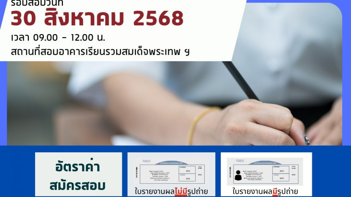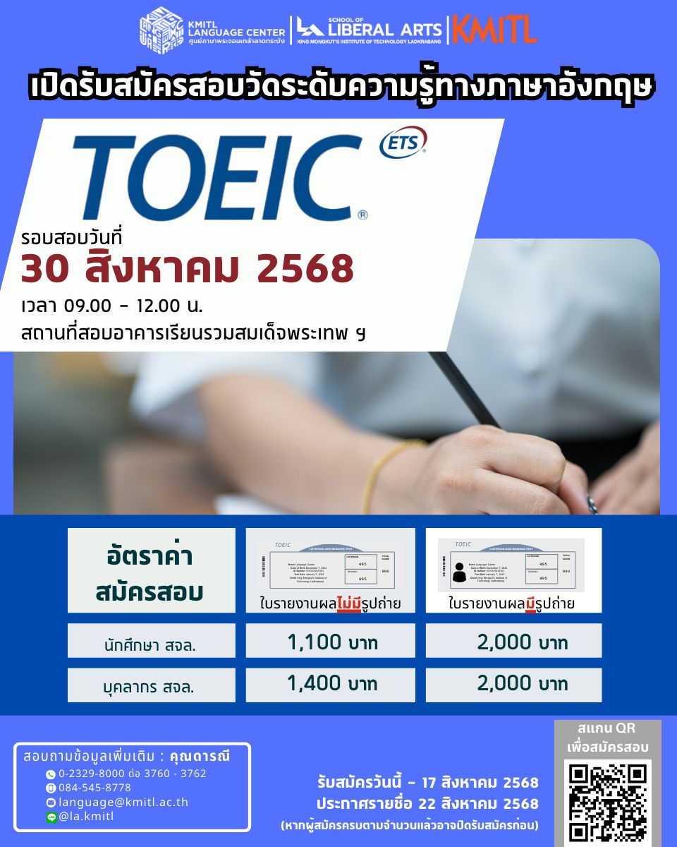 ประกาศเปิดรับสมัครสอบ TOEIC สำหรับนักศึกษาและบุคลากรของสถาบันเทคโนโลยีพระจอมเกล้าเจ้าคุณทหารลาดกระบัง (สจล.)