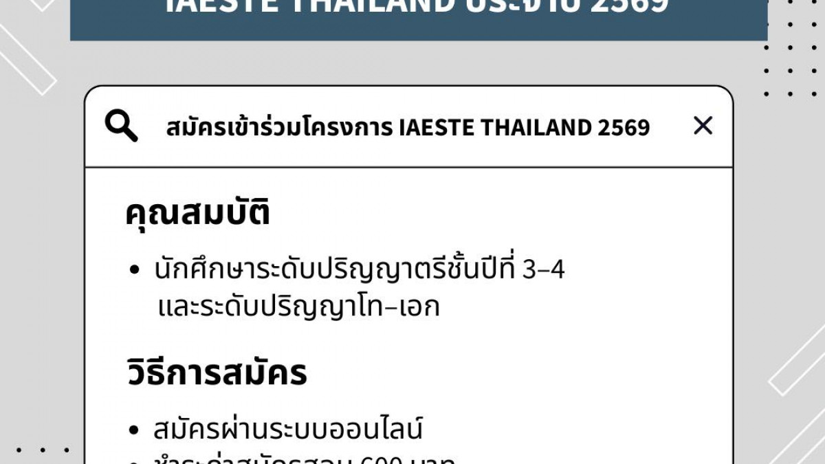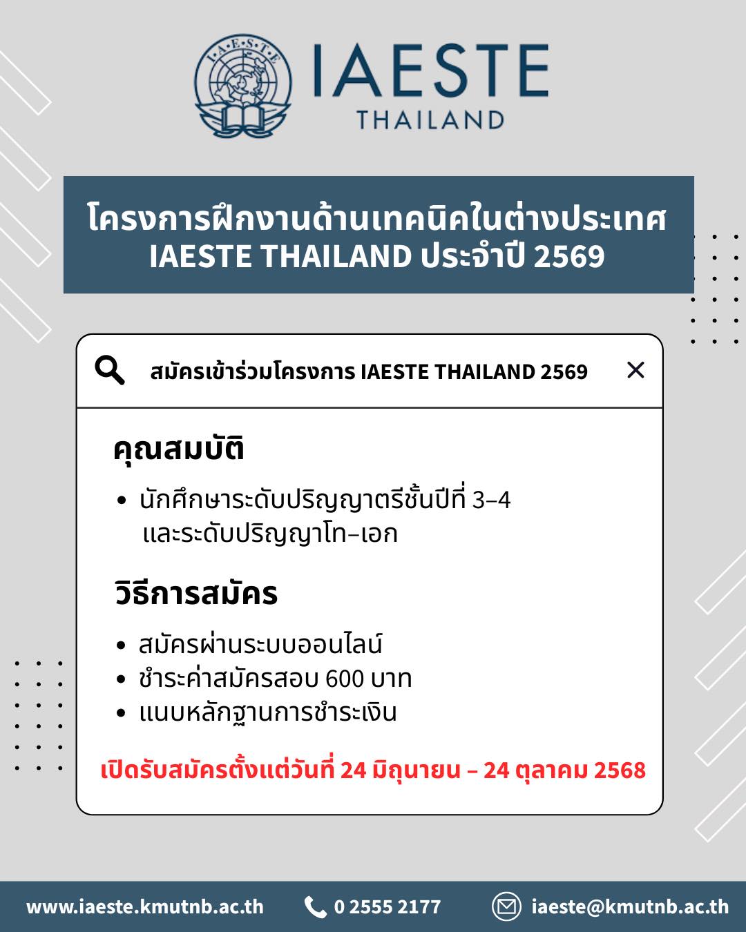ประชาสัมพันธ์โครงการ IAESTE Thailand ประจำปี 2569 ![]()