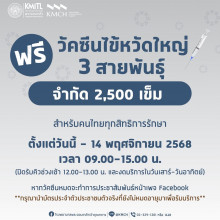 KMCH เปิดบริการอีกครั้ง วัคซีนไข้หวัดใหญ่ 3 สายพันธุ์ ฟรี จำกัด 2,500 เข็ม สำหรับคนไทยทุกสิทธิการรักษา