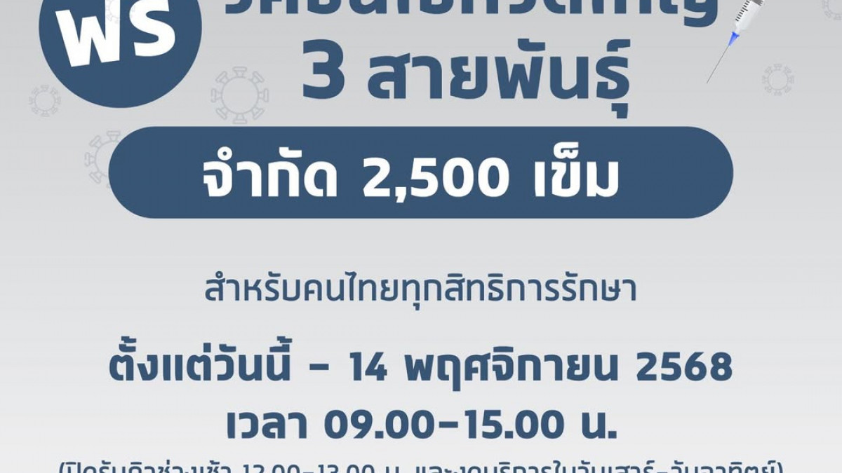 ฟรี #วัคซีนไข้หวัดใหญ่ 3 สายพันธ์ุ