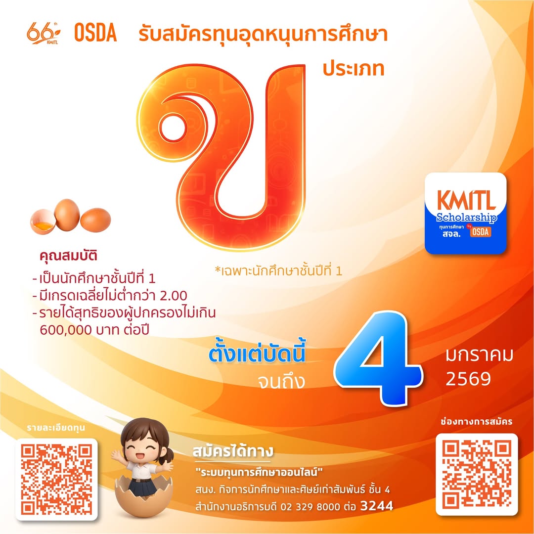ดูรายละเอียดทุน : https://osda.kmitl.ac.th/.../Educational-support...