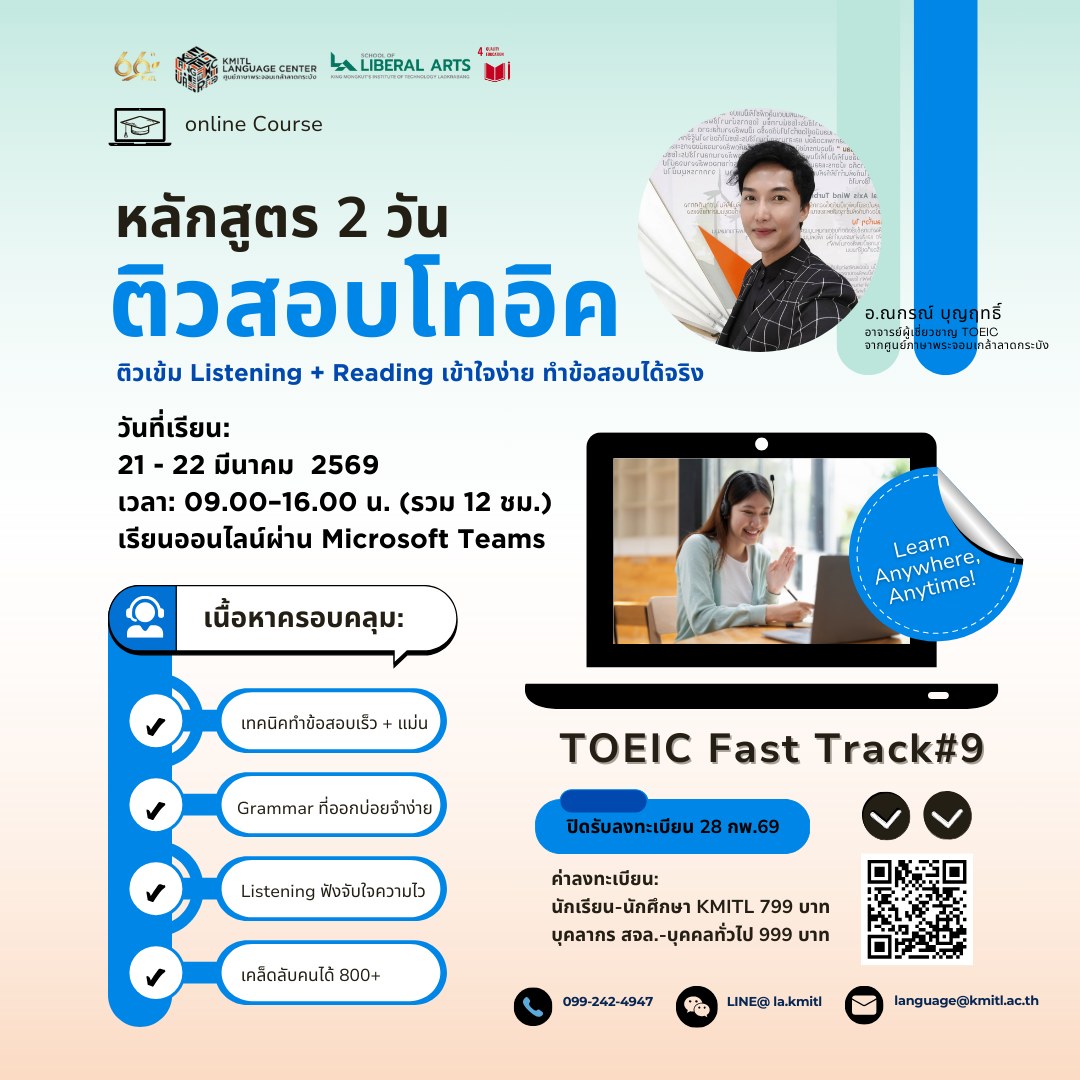 #TOEICFastTrack #TOEIC2026 #ติวTOEIC #KMITLLanguageCenter #ศูนย์ภาษาพระจอมเกล้าลาดกระบัง #KMITL