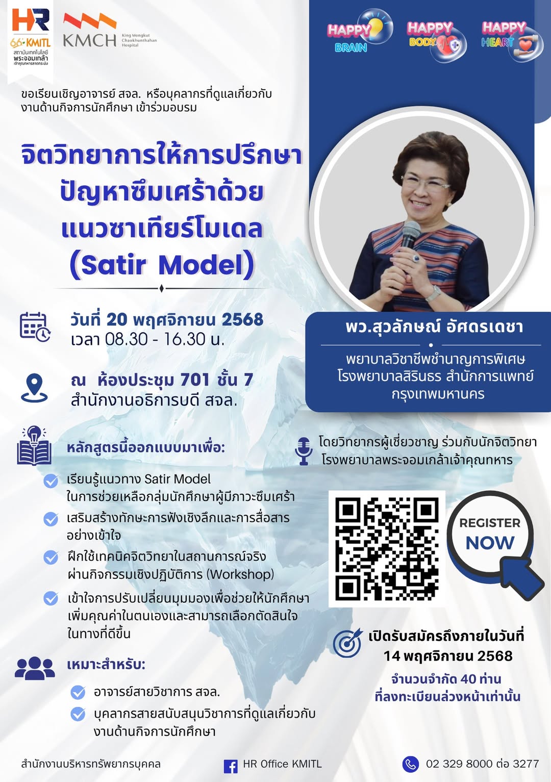 เข้าใจ “ภาวะซึมเศร้า” ในวัยรุ่น กับบทบาทอาจารย์ หรือผู้ดูแลงานด้านกิจการนักศึกษา ผสมผสานการเรียนรู้เครื่องมือที่ทรงพลังและลึกซึ้งจาก Satir Model
