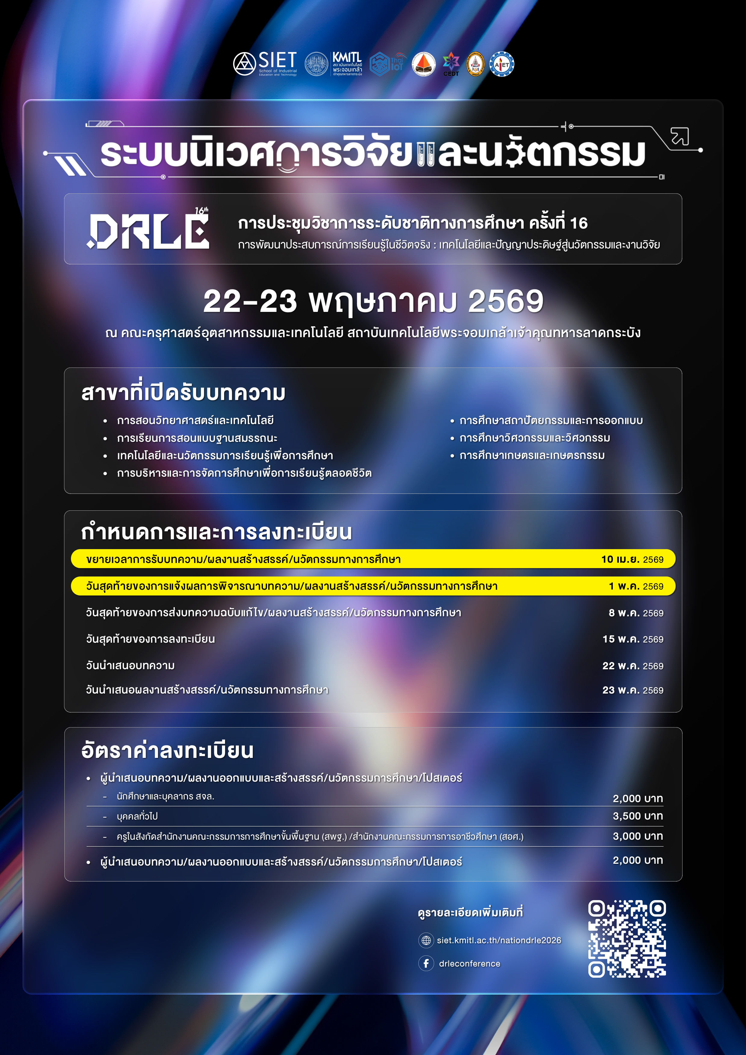 ð āļāļđāļĢāļēāļĒāļĨāļ°āđāļāļĩāļĒāļāđāļāļīāđāļĄāđāļāļīāļĄāđāļĨāļ°āļŠāđāļāļāļĨāļāļēāļāđāļāđāļāļĩāđ: https://siet.kmitl.ac.th/nationdrle2026