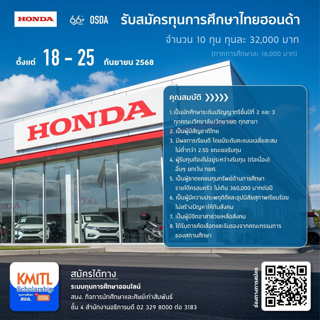 #ทุนการศึกษาสจล. #ทุนภายนอก #OSDA_KMITL #KMITL #ไทยฮอนด้า60ปี #ไทยฮอนด้าเพื่อสังคมไทย