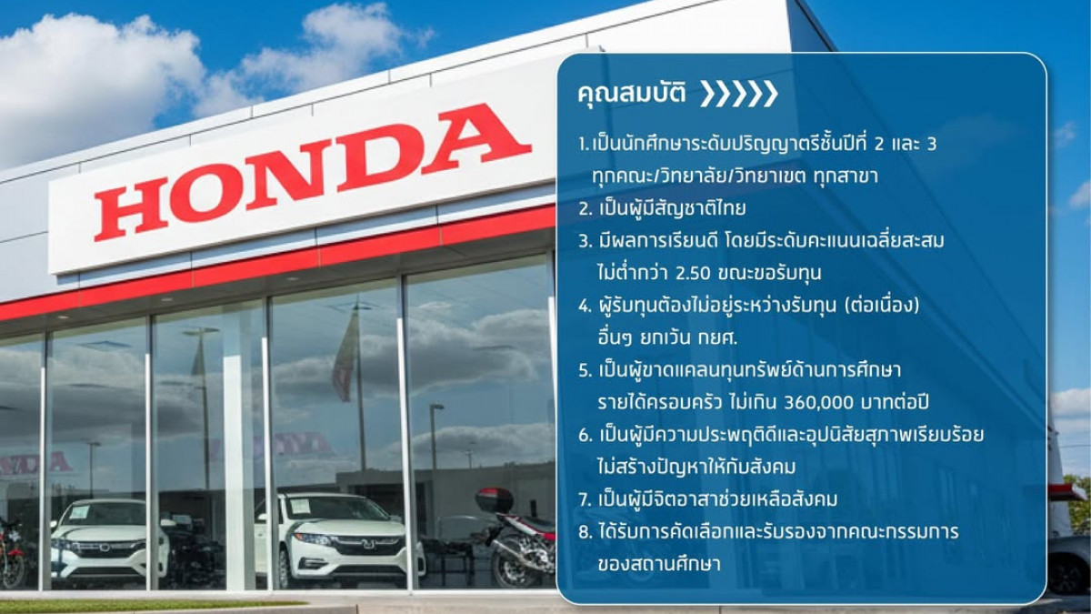 เปิดรับสมัคร ทุนบริษัท ไทยฮอนด้า