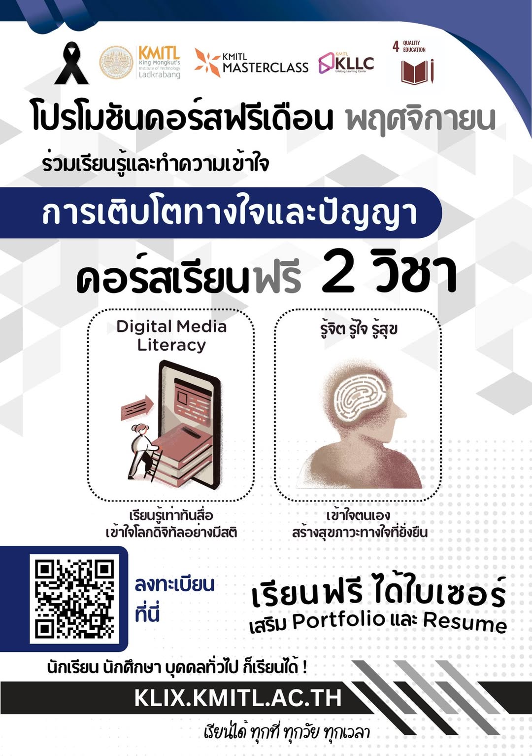 ลงทะเบียนได้เลย ที่นี่ https://klix.kmitl.ac.th/event/177919/