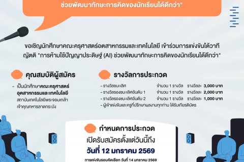 ขอเชิญชวนนักศึกษาคณะครุศาสตร์อุตสาหกรรมและเทคโ...