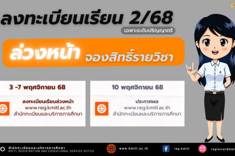 10 Apr ประกาศรายชื่อผู้มีสิทธิ์เข้าศึกษาระดับปริญญาตรี แบบรับตรง รอบที่ 2 หลักสูตรเทคโนโลยีบัณฑิต สาขาวิชาบูรณาการนวัตกรรมเพื่อสินค้าและบริการ (ต่อเนื่อง 2 ปี) คณะครุศาสตร์อุตสาหกรรมและเทคโนโลยี ประจำปีการศึกษา 2568