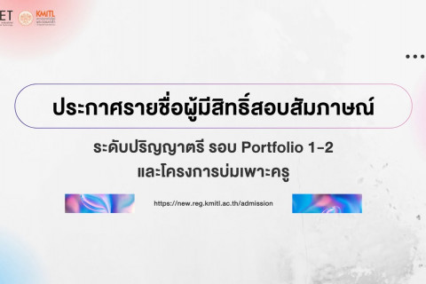 11 Nov ประกาศรายชื่อผู้มีสิทธิ์สอบสัมภาษณ์ระดับปริญญาตรี รอบ Portfolio 1-1 และโครงการสานฝันเด็กใฝ่รู้ ประจำปีการศึกษา 2569
