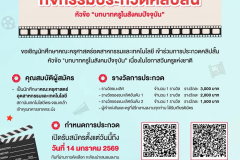 14 May ประกาศรายชื่อผู้มีสิทธิ์สอบสัมภาษณ์ ประจำภาคเรียนที่ 1 ปีการศึกษา 2568 คณะครุศาสตร์อุตสาหกรรมและเทคโนโลยี