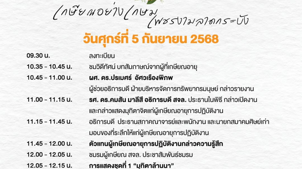 ในวันศุกร์ที่ 5 กันยายน 2568 เวลา 09.30 - 14.00 น.