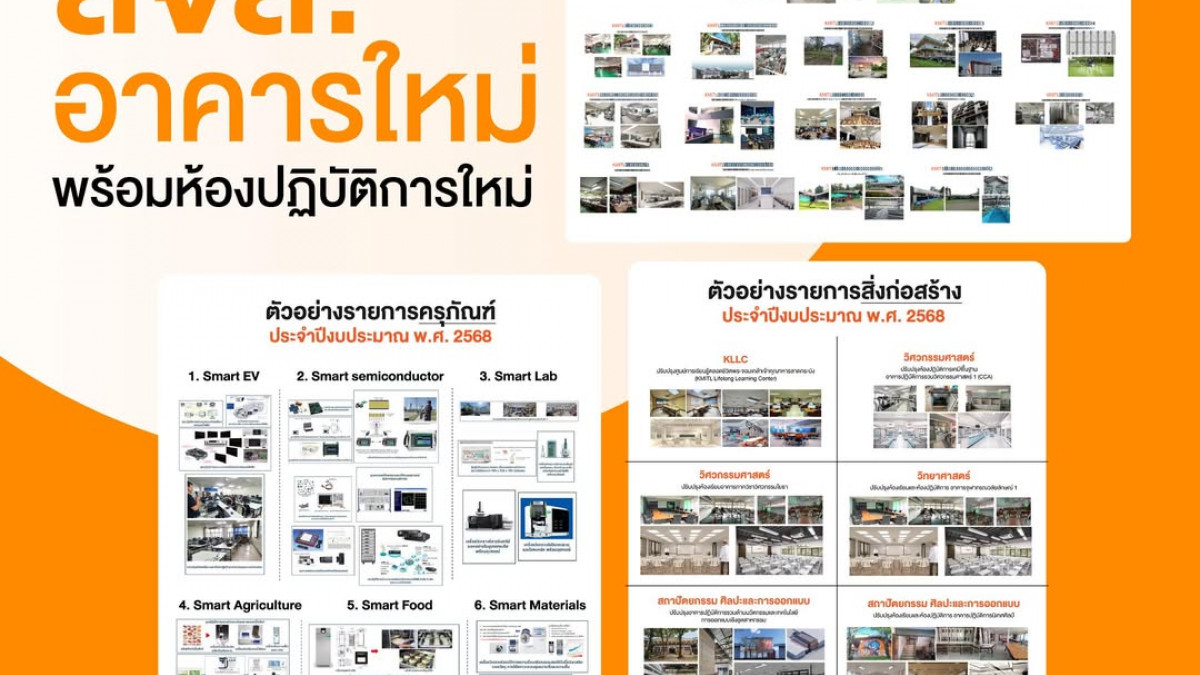 ตั้งแต่ห้องเรียน ห้องปฏิบัติการ ที่ทันสมัย ไปจนถึงสิ่งอำนวยความสะดวกที่ครบครัน ควบคู่การจัดหาครุภัณฑ์ ครบทุกด้าน ทั้ง Smart EV Smart Semiconductor Smart Lab Smart Agriculture Smart Food Smart Materials และเทคโนโลยีอัจฉริยะ