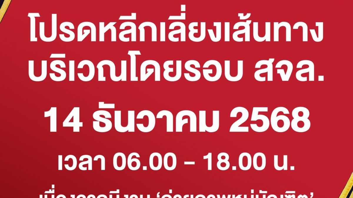 วันอาทิตย์ที่ 14 ธันวาคม 2568 เวลา 06.00 - 18.00 น.